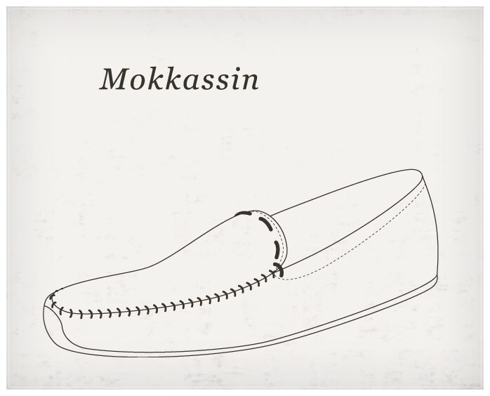 Mokasyny – butki, czasem wręcz kapciuszki, w których noga otulona jest ze wszystkich stron tym samym kawałkiem skóry (przeważnie zamszu). Nie bez racji nazywają się tak z języka Indian, ludzi znanych raczej z niskiego poziomu technologii – wymagają przeszycia dosłownie w dwóch miejscach. Lubię je, tak jak lubię fotografię otworkową – są w pewnym sensie powrotem do korzeni całego tego obuwniczego halo, do czasów, kiedy Adam orał, a Ewa prządła i oboje potrzebowali czegoś na nogi. Oraz za to, że są butami z kategorii „tanie”, więc możesz ich mieć pińcet: czerwone, żółte, zielone i błękitne, czego dusza zapragnie. Często na mokasynkach znajdziesz zamiast podeszwy kołeczki – to tzw. driving mocs, czyli mokasyny do prowadzenia auta. Legenda mówi, że to właśnie temu zastosowaniu zawdzięczają one nietypową podeszwę, co wydaje mi się częściowo prawdopodobne. Podeszwa w takich butach wychodzi za piętę i to niewątpliwie pomaga w prowadzeniu, bo buty nie niszczą się tak bardzo, kiedy spoczywają na pedałach. Ale te kołeczki? Jedyne, z czym mi się kojarzą, to dziurkowane pedały Ferrari. Tylko że do ważnych umiejętności sportowego kierowcy należy szybkie zrzucanie nóg z pedałów, a kołeczki w dziureczkach raczej to utrudniają. Mr. Vintage składa je na karb rdzennie amerykańskiego dziedzictwa, co traktuję z lekkim pobłażaniem, choć to ostatecznie tłumaczenie dobre jak każde inne.